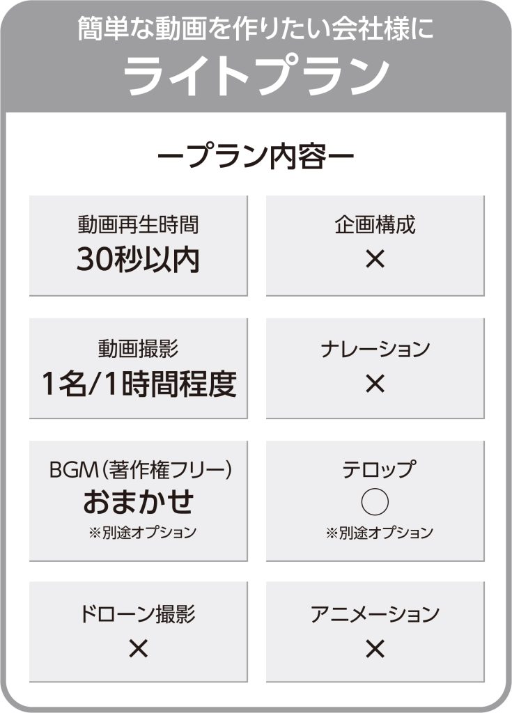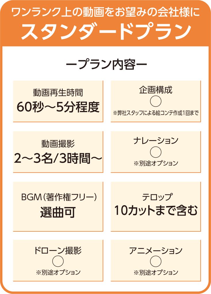 プロカメラマンや編集スタッフを内製化しているため、完全外注での制作よりも安価での制作が可能です。